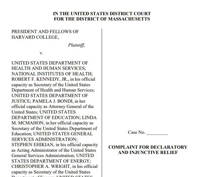哈佛大学在起诉书中指控美国联邦政府的行为违反美国宪法第一修正案赋予大学的自主权,以及1964年《民权法》等多项联邦法律。